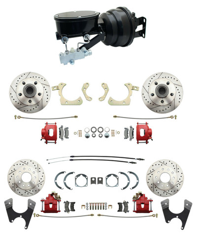 1959-1964 Impala Front/ Rear Disc Brake Kit Black Oval Master Kit & Red Calipers