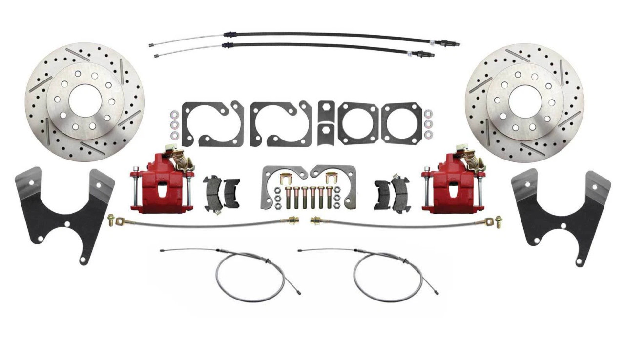 1975-81 Camaro Rear Disc Brake Conversion Kit Red Calipers Staggered Shocks