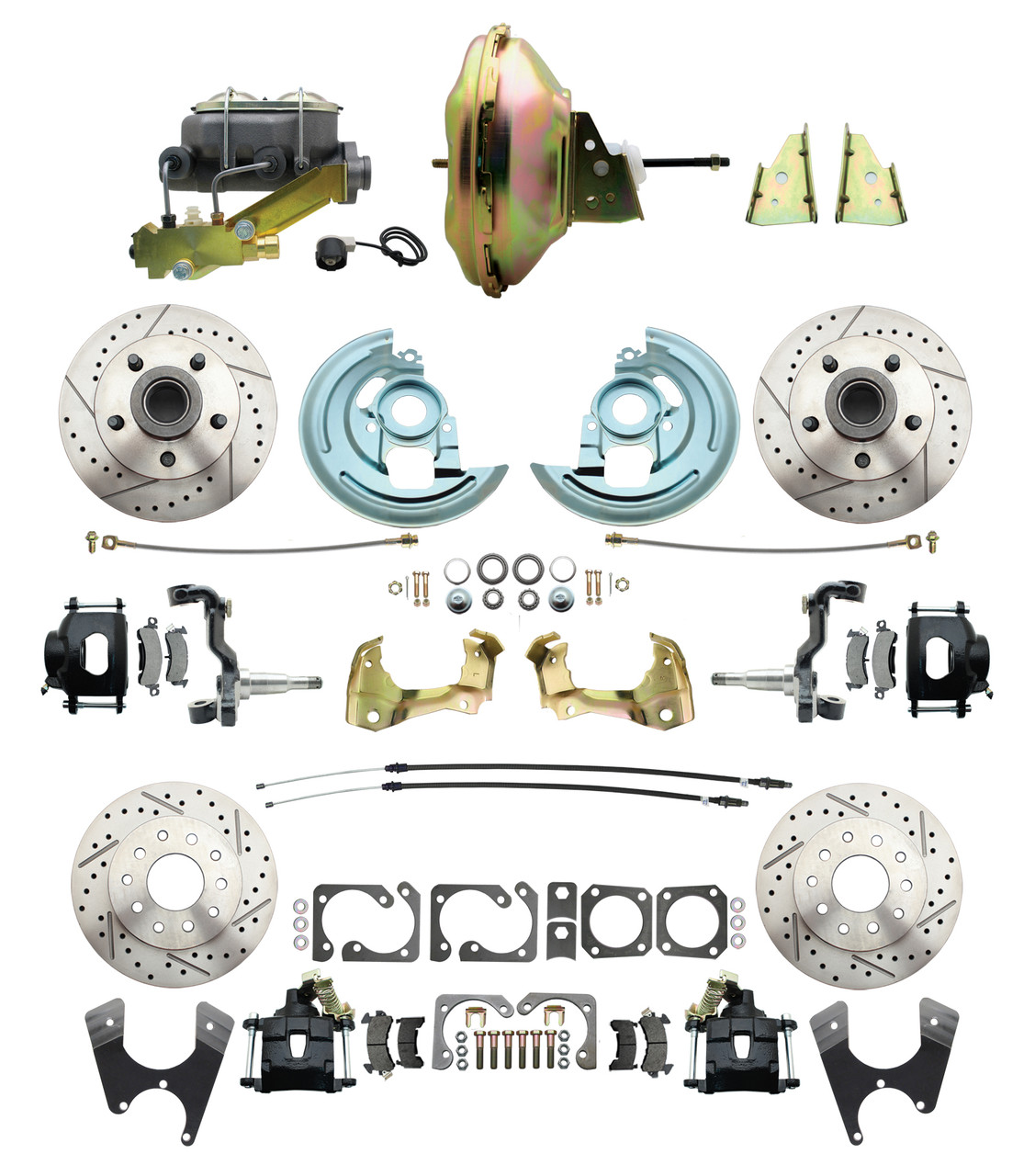 GM 1967-72 A-Body Front & Rear Black Disc Brake, 11" Power Brake Booster